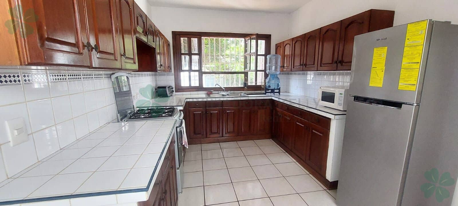 Casa ubicada en Carretera Sur con las siguientes especificaciones: 2 habitaciones amplias con baño privado, sala de estar, sala familiar, cocina, comedor, terraza, estudio, área de servicio completa, área de lavado; jardín, garaje techado para 2 vehículos, bodega, portones eléctricos aire acondicionado, calentador de agua.
