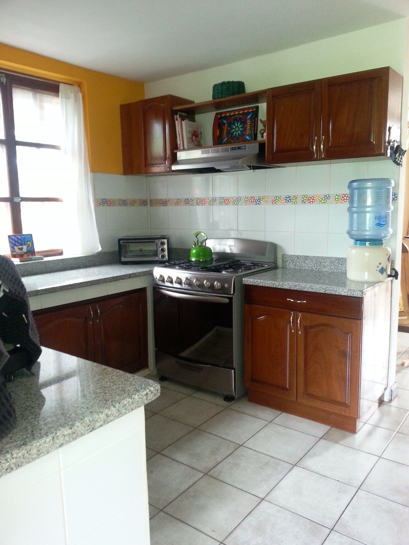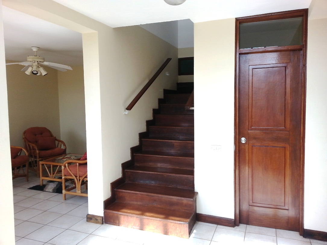 Km 10 1/4 Carretera Sur, Casa de dos plantas totalmente amueblada, con mucha luz natural y en condominio privado. La casa cuenta con: 3 habitaciones con aire acondicionado Split y 2.5 baños. La habitación principal tiene abanico de techo, baño con bañera y ducha; y balcón con vista espectacular a las montañas. Las otras dos habitaciones comparten baño y uno tiene walking closet. La casa cuenta con sala para TV, sala-comedor, cocina totalmente equipada con top de granito, más un cuarto de servicio con su baño. Posee tres terrazas, área de lavado y mini bodega, sistema de agua caliente. Madera preciosa por toda la casa, con cedazos en todas las ventanas y puertas. Teléfono, internet/wifi; así como jardín amplio con árboles frutales y parqueo para 2 carros bajo techo.
