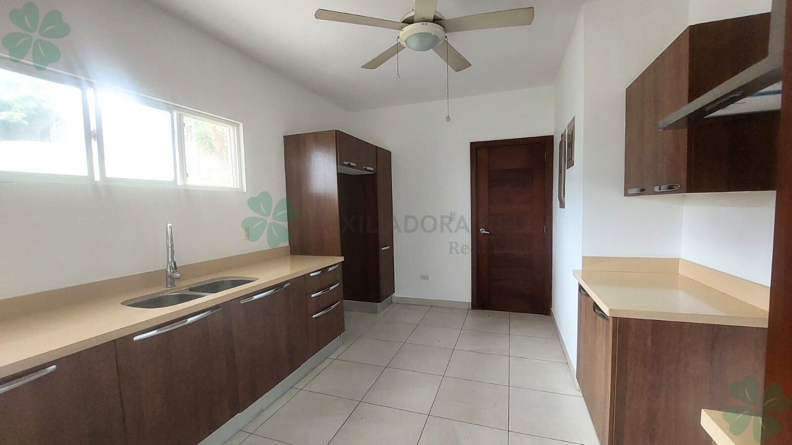 Casa moderna de dos plantas ubicada en condominio nuevo, cuenta con las siguientes especificaciones: 3 habitaciones amplias con baño (habitación principal con walking closet), sala de estar, cocina, comedor, habitación de servicio completa, área de lavado y secado, terraza techada. Jardín, abanicos de techo en todos los ambientes, huellas para 2 vehículos.