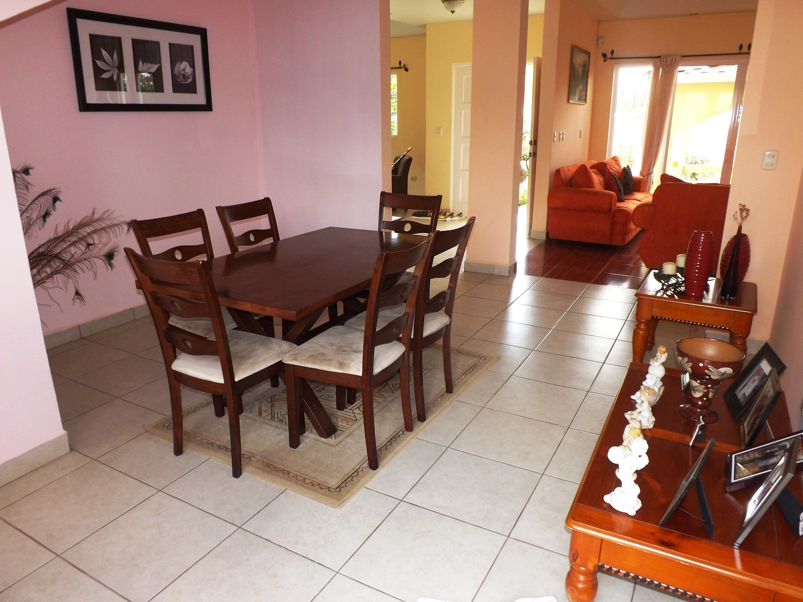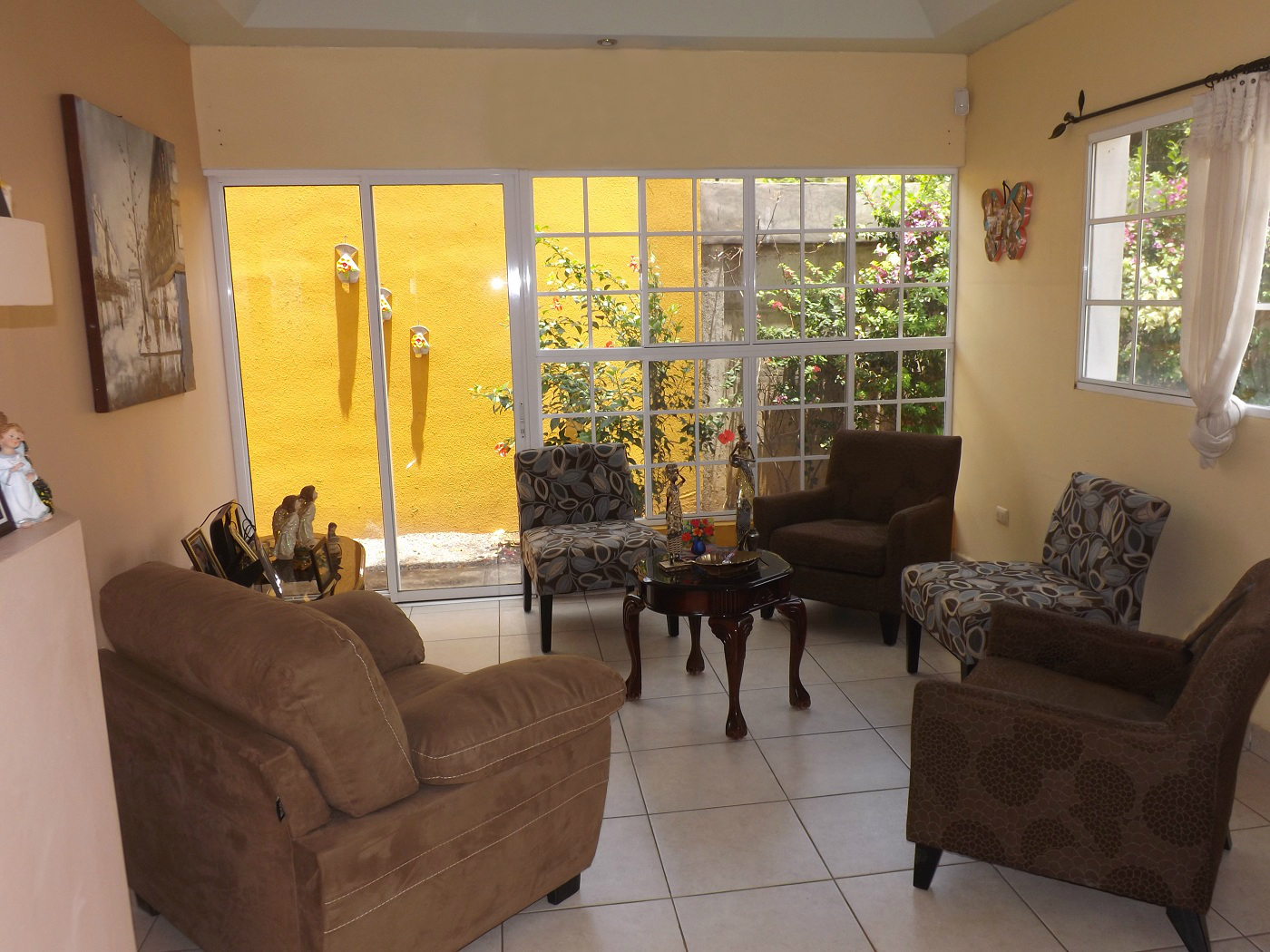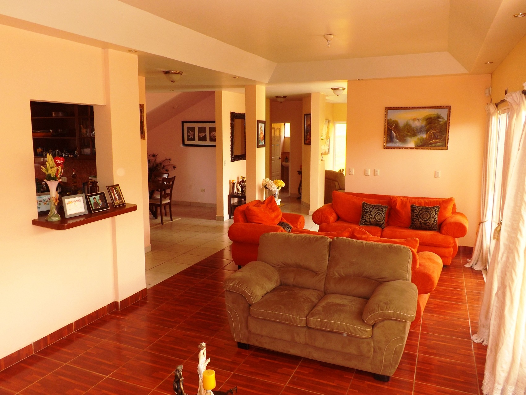Casa con 4 años de construcción con un estilo Español con 395 Mts.2 de construcción en un lote de 114.87 vrs.2 divididos en dos plantas; Planta Baja: sala de estar, sala familiar, comedor, cocina amplia con top de granito y muebles de madera, 1/2 baño de visita, 2 habitaciones (con closet de pared, baño compartido) bodega. Planta Alta: habitación principal (con walking closet, baño privado, jacuzzi, balcón), 2 otras habitaciones (con balcón, closet de pared, baño compartido). Terra techada completamente independiente, garaje para 2 vehículos, amplio jardín delantero y trasero, tanque de almacenamiento de agua con bomba hidroneumática, calentador de agua, muro perimetral con cerca eléctrica y sensores de movimiento, alarma.