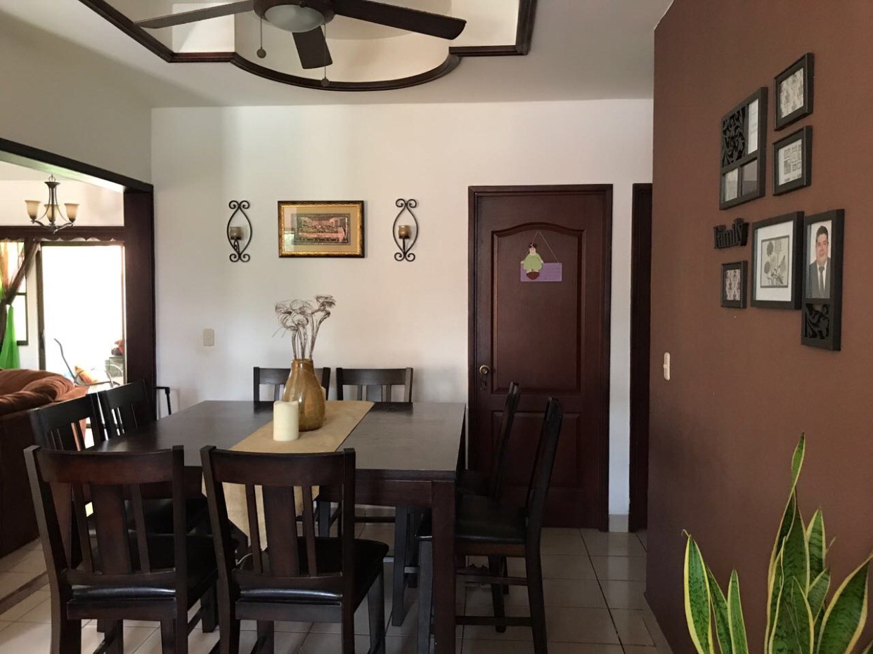 Casa ubicada en Carretera a Masaya, Residencial Monte Rosa, en un entorno tranquilo, agradable y fresco, con seguridad las 24 horas, muro perimetral y acceso controlado. La propiedad cuenta con las siguientes especificaciones.420 vrs², 155 mts², 3 habitaciones (habitación principal con walking closet), 2 baños completos, ½ baño de visitas, sala de entretenimiento, sala, comedor, cocina con isla de madera, terraza, habitación de servicio completa, área de lavandería, una pequeña habitación para visitas, aires acondicionados, abanicos de techo, cortinero de madera, verjas, cerca eléctrica, cedazo y área verde con jardín.