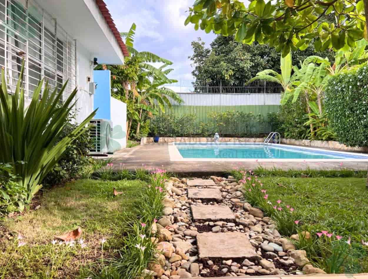 Cómoda y espaciosa casa, con excelente iluminación y ventilación en todos sus ambientes, ubicada en el sector de Las Colinas, zona segura, céntrica, de fácil acceso al comercio y sobre todo a pocos minutos de Galerías Santo Domingo. La propiedad cuenta con las siguientes especificaciones: 4 habitaciones, 3 baños completos, ½ baño de visita, sala de estar, sala TV, sala, comedor, cocina, terraza, habitación de servicio completa, área de lavandería, aires acondicionados, abanicos de techo, muro perimetral con serpentina, garaje techado para dos vehículos, área verde y piscina.