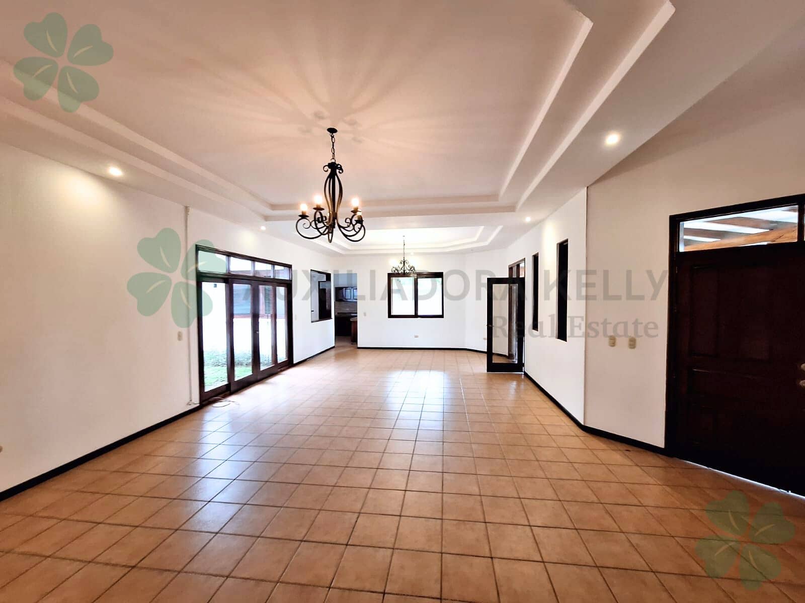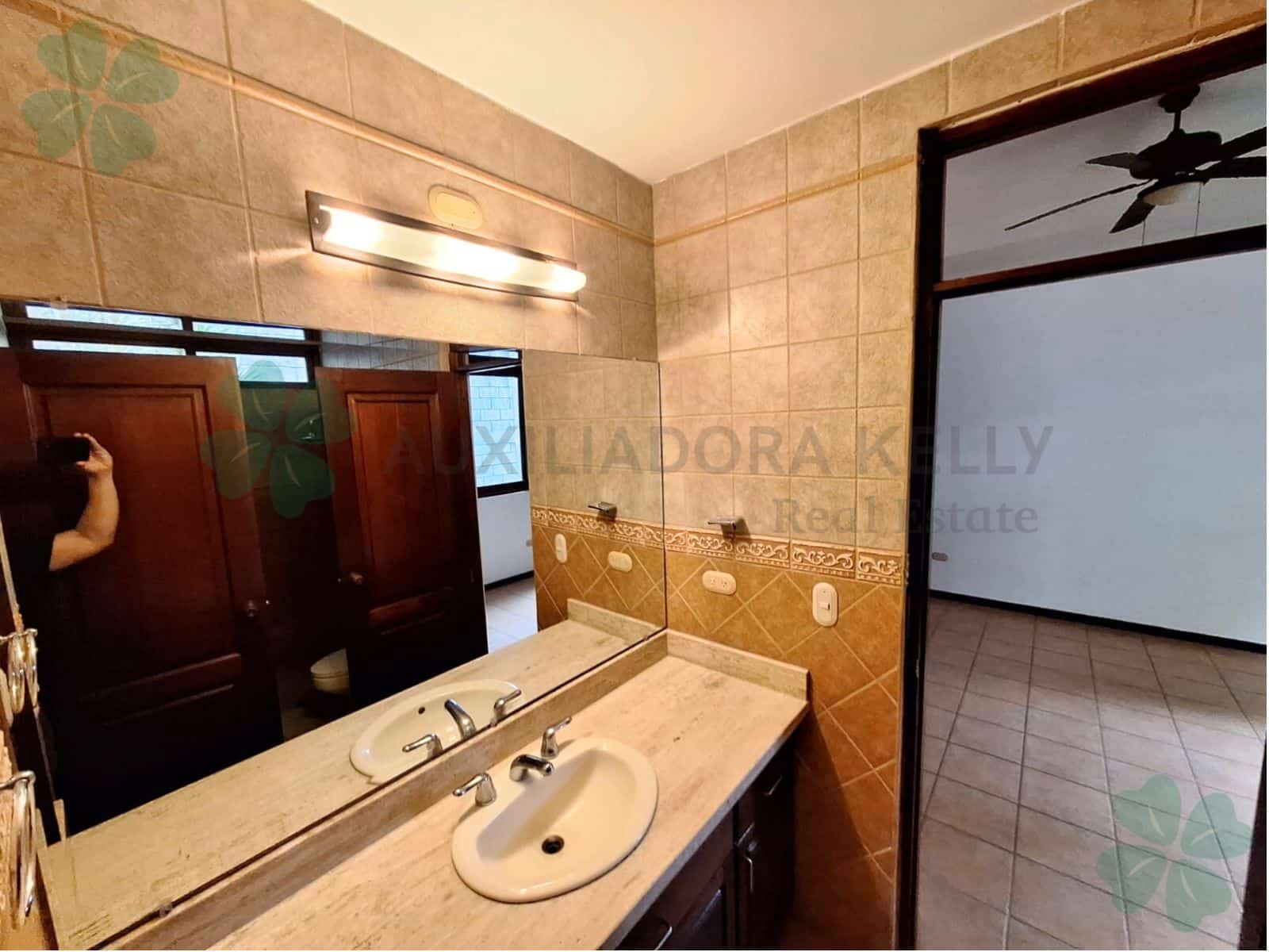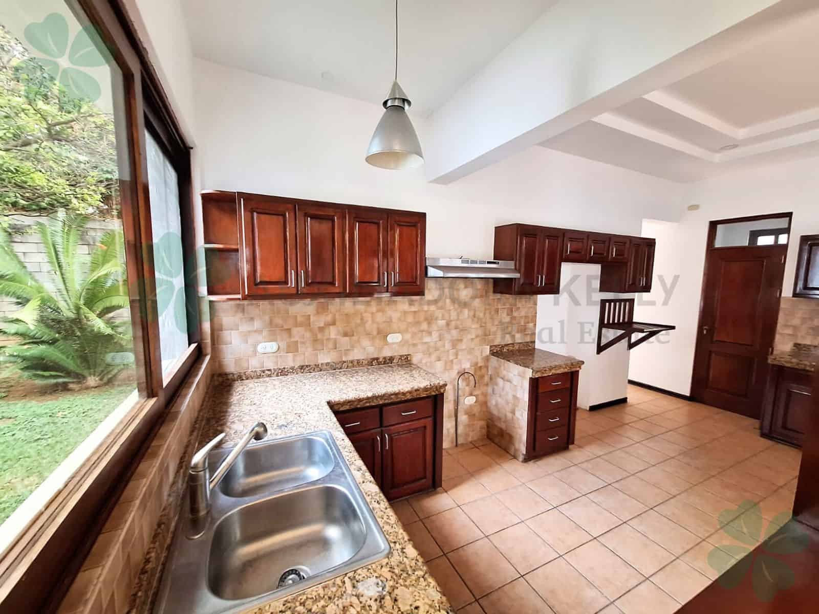 3 habitaciones cada una con aire acondicionado y ventilador de techo (habitación principal con vestidor, baño privado, jacuzzi y ducha. Dormitorios secundarios con baño compartido y closet). Sala de estar con puerta de salida a jardín interno y aislante en techo. Cocina con top de granito, 2 lavaderos de acero inoxidable, muebles de madera, desayunador y alacena. Sala-Comedor con acceso a cocina y terraza, con material aislante en techo y lámparas colgantes. Baño de visitas. Terraza techada, con maderas finas, con vista a la piscina y a los jardines. Piscina. Jardín amplio. Área de lavado, dormitorio y baño de servicio, bodega, dormitorio de guarda con baño. Muro perimetral propio con luces, portón eléctrico, video timbres, sistema de alarma perimetral, calentador de agua (a gas), tanque de agua de 2,500lts.