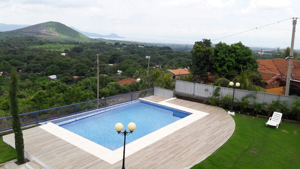 Linda casa de dos plantas ubicada sobre una colina que hace que la propiedad tenga una vista espectacular hacia el lago de Managua y a toda la ciudad, también brindándole un micro clima totalmente agradable. La propiedad cuenta con las siguientes especificaciones: 1,500 vrs de terreno, 475 mts de construcción, PLANTA ALTA: 5 habitaciones (habitación principal con walking closet) 5 baños, estudio privado, sala familiar, terraza + 1 azotea (3er. planta), PLANTA BAJA: lobby, sala, comedor, terraza, 1 oficina (estudio), cocina, alacena, área lavandería, habitación de servicio completa, ½ baño visita, bodega principal, calentador de agua centralizado, aires acondicionados, abanicos de techo, área de parqueo para 6 vehículos, sistema de seguridad monitoreado, cerca eléctrica & cctv y amplias áreas verde.