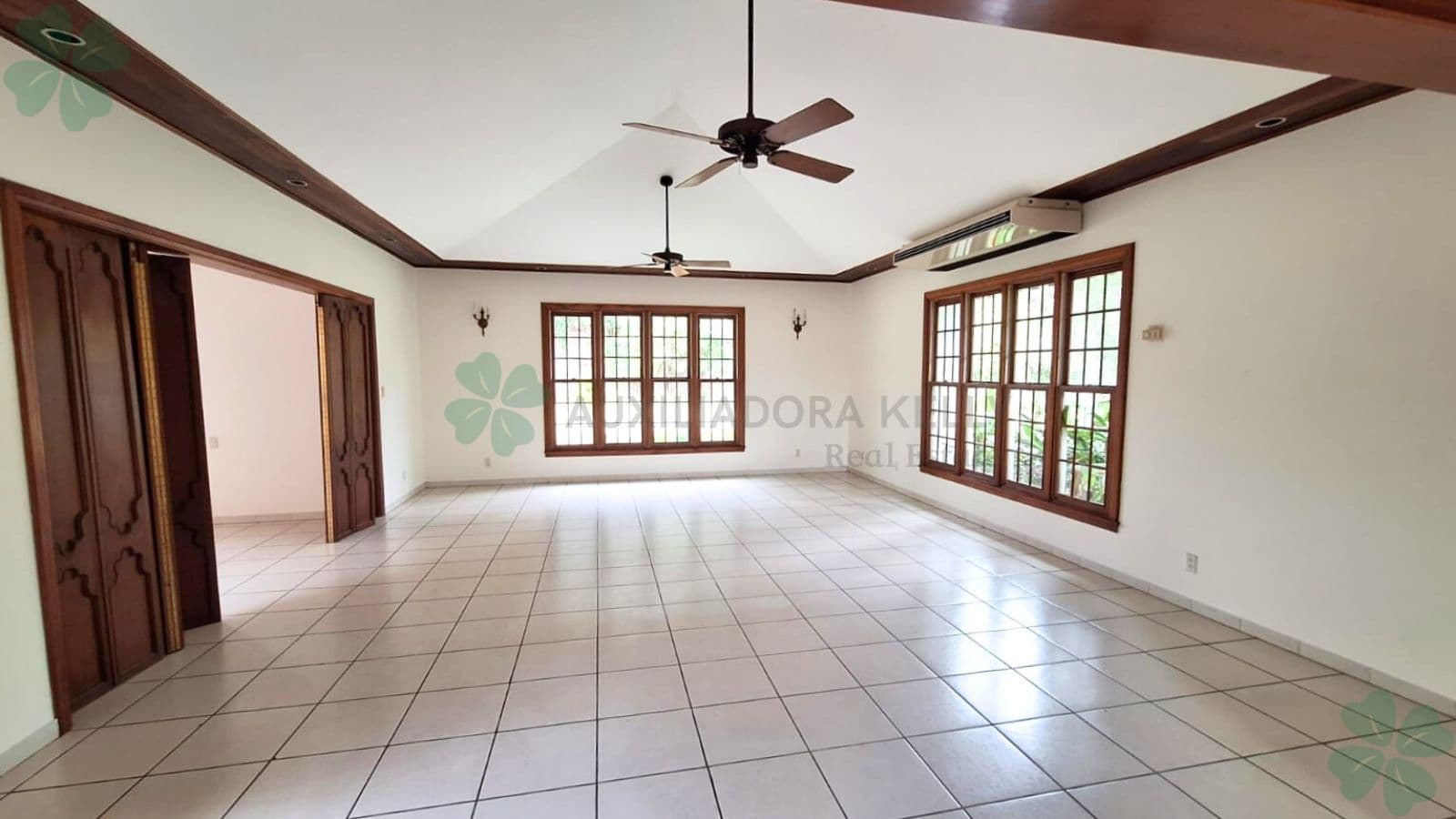 Casa en carretera sur, moderna con estilo clásico y elegante, detalles de madera y ventanas amplias con mucha entrada de luz. La casa cuenta con los siguientes ambientes: habitación principal con su walk-in closet, baño amplio y espacio para oficina, dos habitaciones adicionales completas con su propio baño, sala amplia, comedor, cocina, sala de estar y baño de visitas, terraza y jardín precioso con árboles y en zona fresca con piscina. Apartamento aparte con dos habitaciones, dos baños, cocina, sala-comedor.