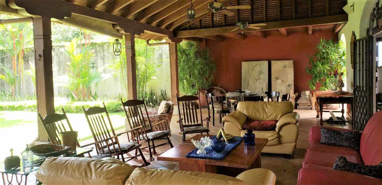 Casa estilo colonial-moderna con ventilación de aire natural. Cuenta con 4 habitaciones cada una con su baño, acabados modernos, sala amplia, comedor, cocina, estudio con vista preciosa, área de servicio completa. Jardín grande con árboles, piscina.