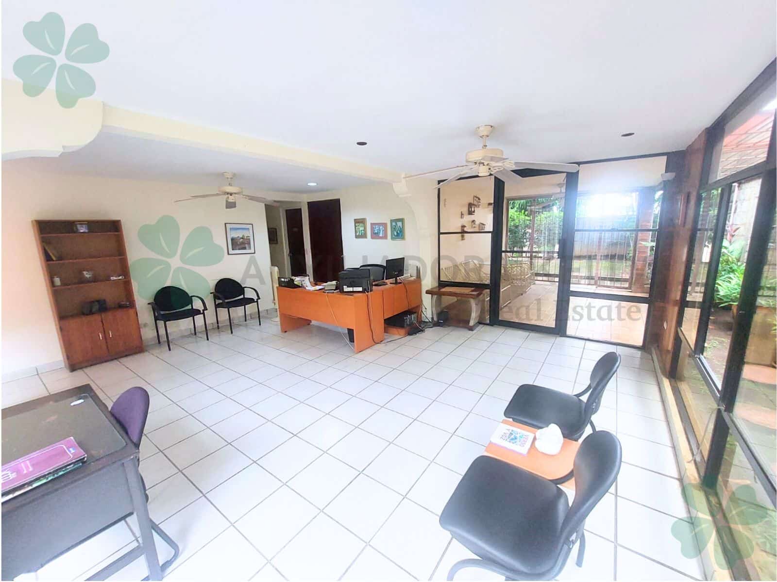Vivienda de dos plantas con anexo ideal para oficina, patios enladrillados y embaldozados, tanque de agua, muro perimetral, puertas y ventanas al exterior con verjas.