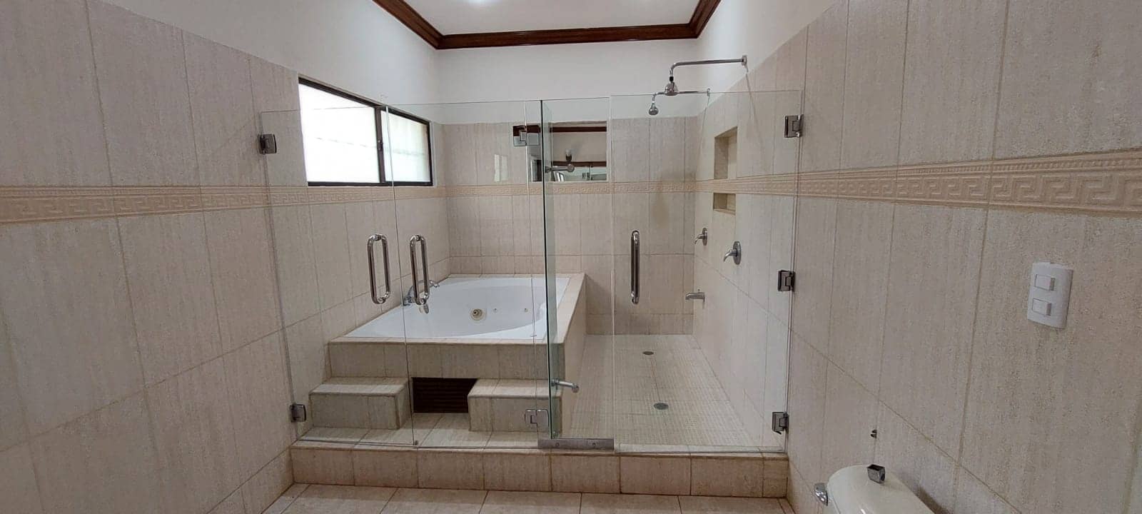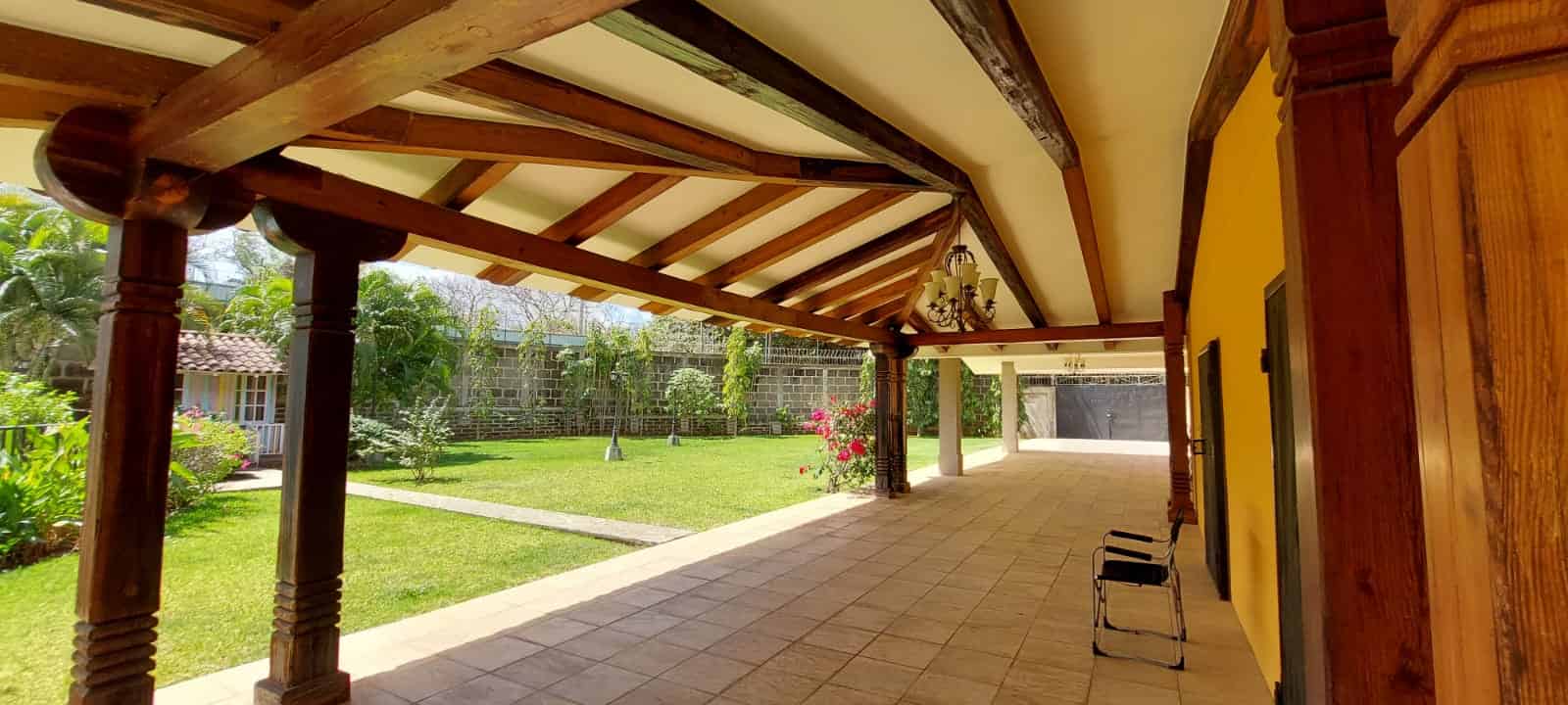 La propiedad cuenta con 5 habitaciones cada una con su baño y closet, Amplias áreas de jardines y terrazas, piscina, apartamento, terreno de 3000 varas, estacionamientos para vehículos