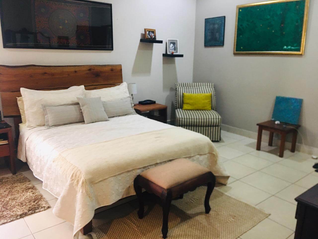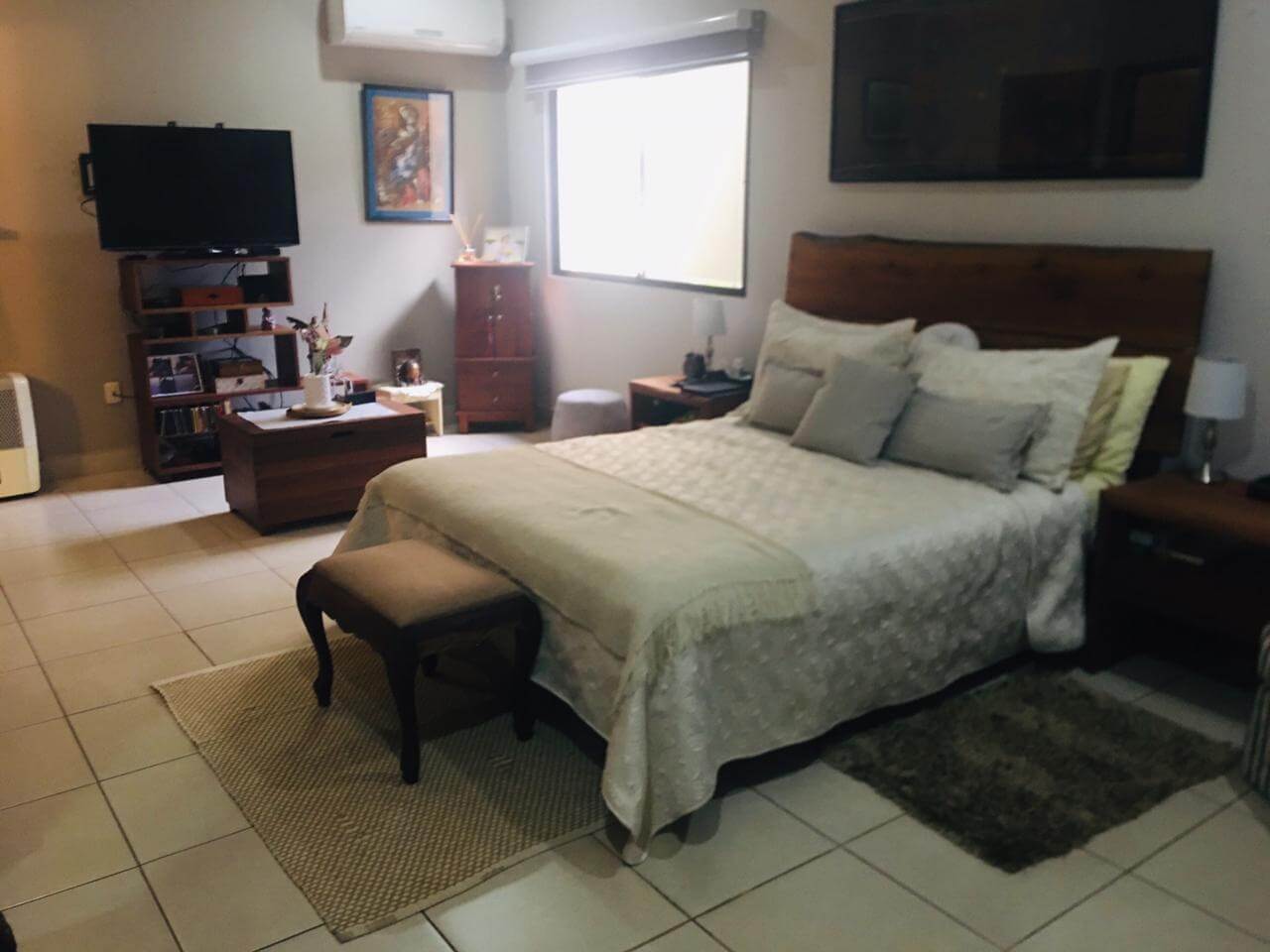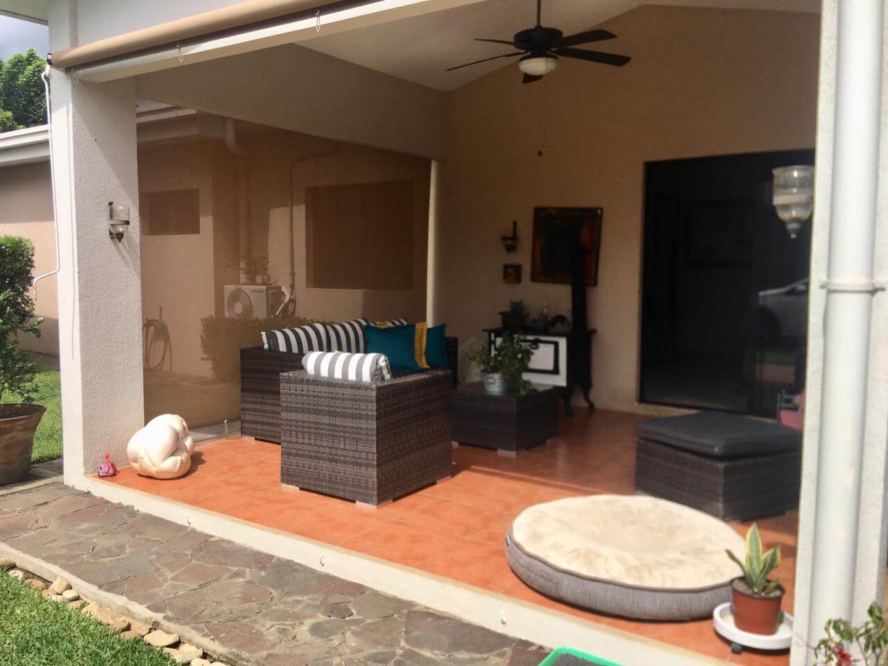 Linda casa ubicada en Las Colinas, con muro perimetral con porton eléctrico y entrada independiente a apartamento. Además cuenta con Guest House con área de cocina, lavandería, baño y Walking Closet, así como una bodega externa y un tanque de agua de 1700lts. La propiedad cuenta con las siguientes especificaciones: 3 habitaciones todas con aire acondicionados inverters y abanicos de techo, 2 baños y medio, sala de estar familiar con abanico de techo y estudio con abanico de techo.