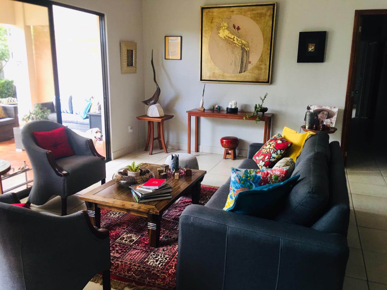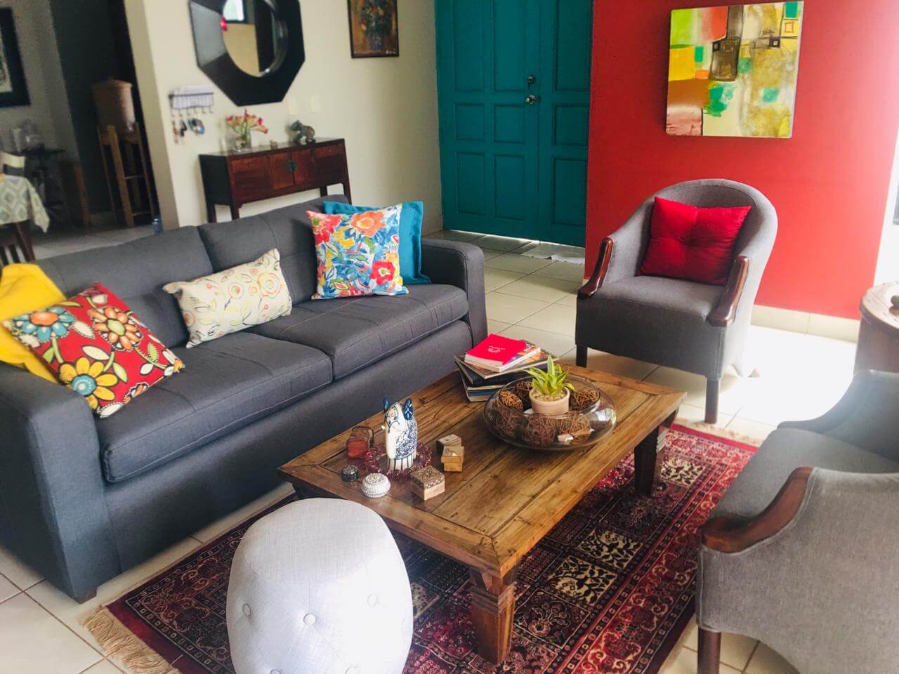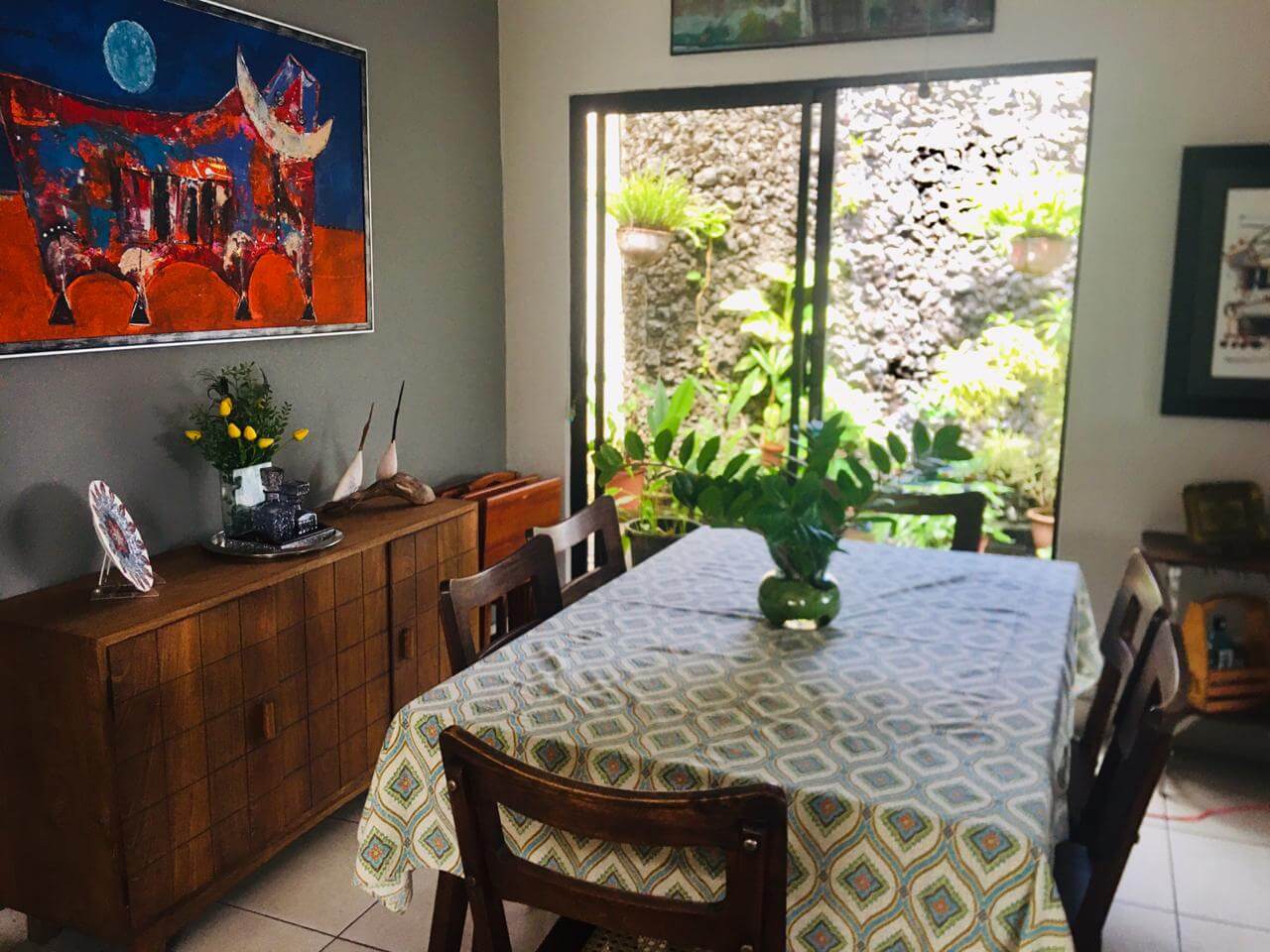 Linda casa ubicada en Las Colinas, con muro perimetral con porton eléctrico y entrada independiente a apartamento. Además cuenta con Guest House con área de cocina, lavandería, baño y Walking Closet, así como una bodega externa y un tanque de agua de 1700lts. La propiedad cuenta con las siguientes especificaciones: 3 habitaciones todas con aire acondicionados inverters y abanicos de techo, 2 baños y medio, sala de estar familiar con abanico de techo y estudio con abanico de techo.