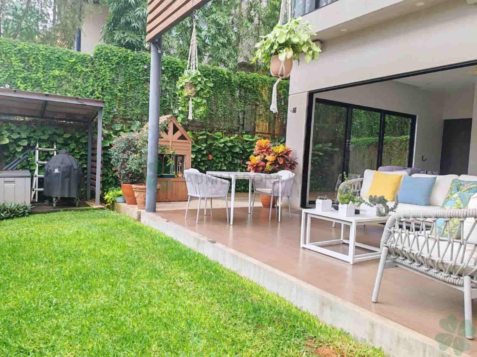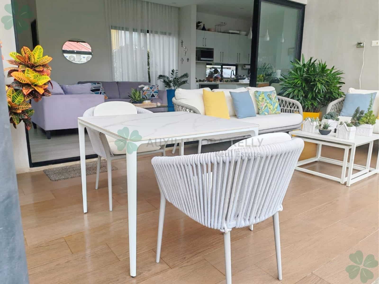 La casa está ubicada dentro de condominio privado. Cuenta con 3 habitaciones, 2.5 baños, sala, comedor, cocina, cuarto de servicio con baño, parqueo para 2 vehículos, terraza y jardín, cuarto de servicio y pérgola en lavandería. Condominio cuenta con casa club, piscina, gimnasio y vigilancia 24/7.