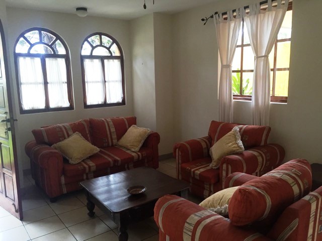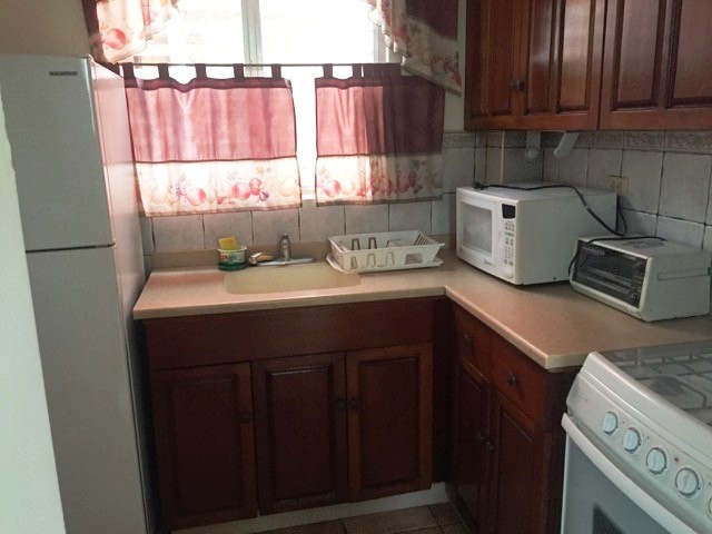 Completamente amueblado, apartamento de 2 habitaciones con baño compartido, 1/2 baño de visitas, sala - comedor, cocina, terraza techada, área de servicio completa, jardín, vigilancia 24 horas.