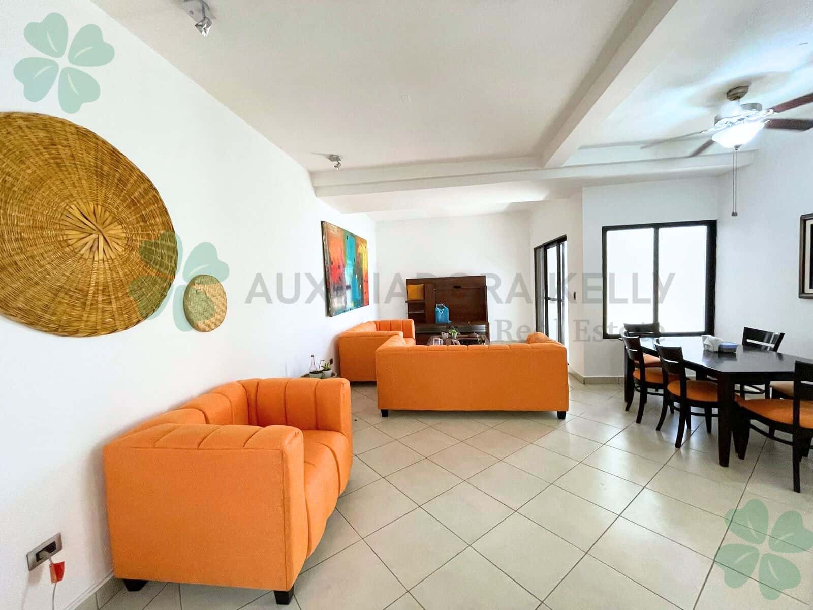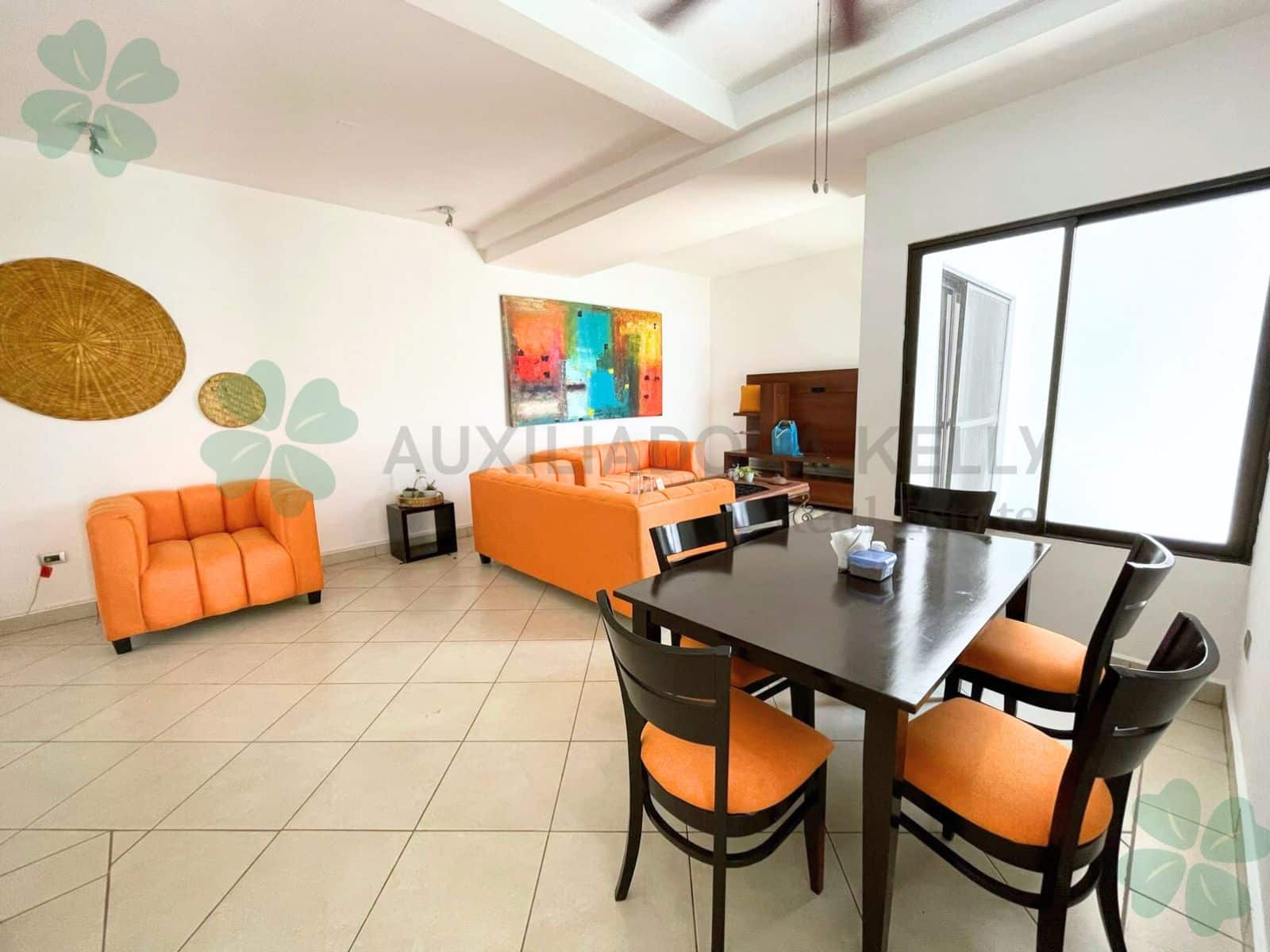Cómodos apartamentos completamente amoblado ubicado en condominio seguro y tranquilo en el sector de Las Colinas, cerca de supermercados, restaurantes, plazas comerciales, con seguridad las 24 horas, muro perimetral, acceso controlado y piscina. Los apartamentos cuentan con las siguientes especificaciones: 170 mts² de construcción, 3 habitaciones amplias (habitación principal con walking closet), 2 baños completos, ½ baño de visita, sala de estar, sala familiar, cocina, comedor, terraza, habitación de servicio completa, área de lavandería, garaje techado, aires acondicionados, abanicos de techo y jardín.