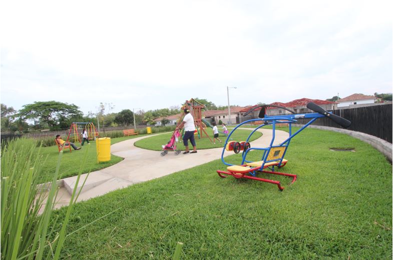 130 viviendas unifamiliares a 15 minutos de Centro Comercial Galerías de Santo Domingo en zona de alta plusvalía, seguridad las 24 horas, entrada de lujo con garita de seguridad, condominio protegido por muro perimetral. Parque de juegos infantiles, área social, con cuatro modelos Disponibles. Modelo Mari: Tiene un área total de 112.05 metros cuadrados, consta de porche, sala, comedor, cocina, dormitorio de servicio con su baño, área de lava y plancha, tendedero, dormitorio principal con su baño y walking closet, dormitorio 2 con baño compartido y walking closet, terraza techada, con un precio de US$93,150. Modelo Irene: Tiene un área total de 136.34 metros cuadrados, consta de porche, vestíbulo, sala, comedor, cocina, dormitorio de servicio con su baño, área de lava y plancha, tendedero, dormitorio principal con su baño y walking closet y dos dormitorios con baño compartido y walking closet en dormitorio #1 y closet de pared en dormitorio #2, con un precio de US$105,900. Modelo Sofía: Tiene un área total de 165.61 metros cuadrados, consta de porche, vestíbulo, sala, comedor, cocina, dormitorio de servicio con su baño, área de lava y plancha, tendedero, terraza techada, sala principal, sala familiar, dormitorio principal con su baño y walking closet, dos dormitorios adicionales con baño compartido, uno con walking closet y el otro de pared, con un precio de US$123,900. Modelo Elizabeth: Tiene un área total de 180.28 metros cuadrados, consta de porche, vestíbulo, estudio, baño de visita, sala, comedor, cocina, dormitorio de servicio con su baño, área de lava y plancha, tendedero, terraza techada, sala principal, sala familiar, dormitorio principal con su baño y walking closet, dos dormitorios adicionales con baño compartido, uno con walking closet y el otro de pared, con un precio de US$129,900.