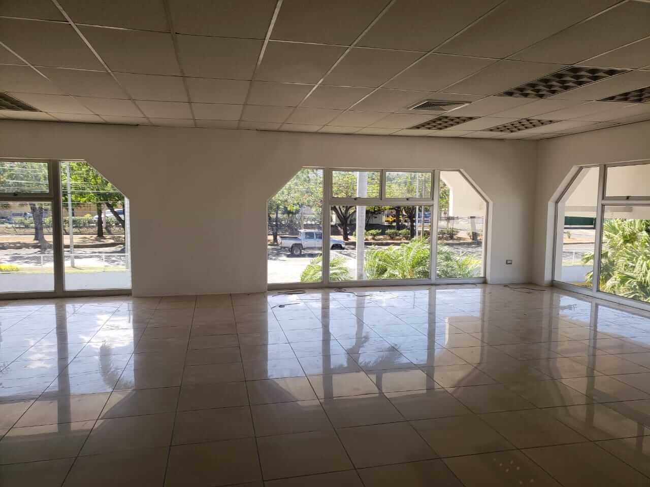 Edificio de dos pisos con área para alquiler de 2,270 mt2. Área de estacionamiento con cerca perimetral para 70 vehículos. Tanque de almacenamiento de agua con sistema hidroneumático, Piso de cerámica, cielos con lámparas led de alta eficiencia, Divisiones internas existentes. Cuenta con dos (2) escaleras y área de recepción en la planta baja en los extremos este y oeste del edificio. Con rápido acceso a las principales vías de la ciudad, Zona segura alejada de rotondas y puntos de conflicto, Cerca de paradas de buses, supermercado, gasolinera, bancos y restaurantes. Precio de alquiler