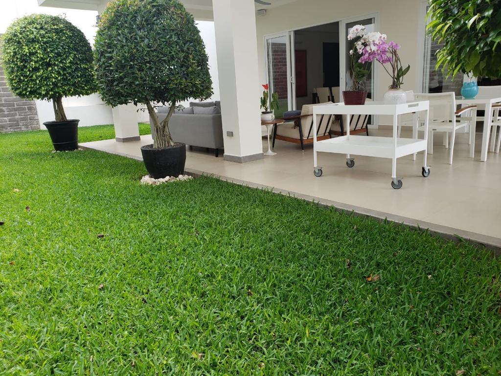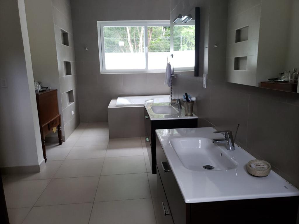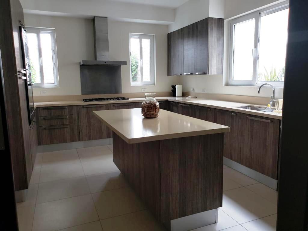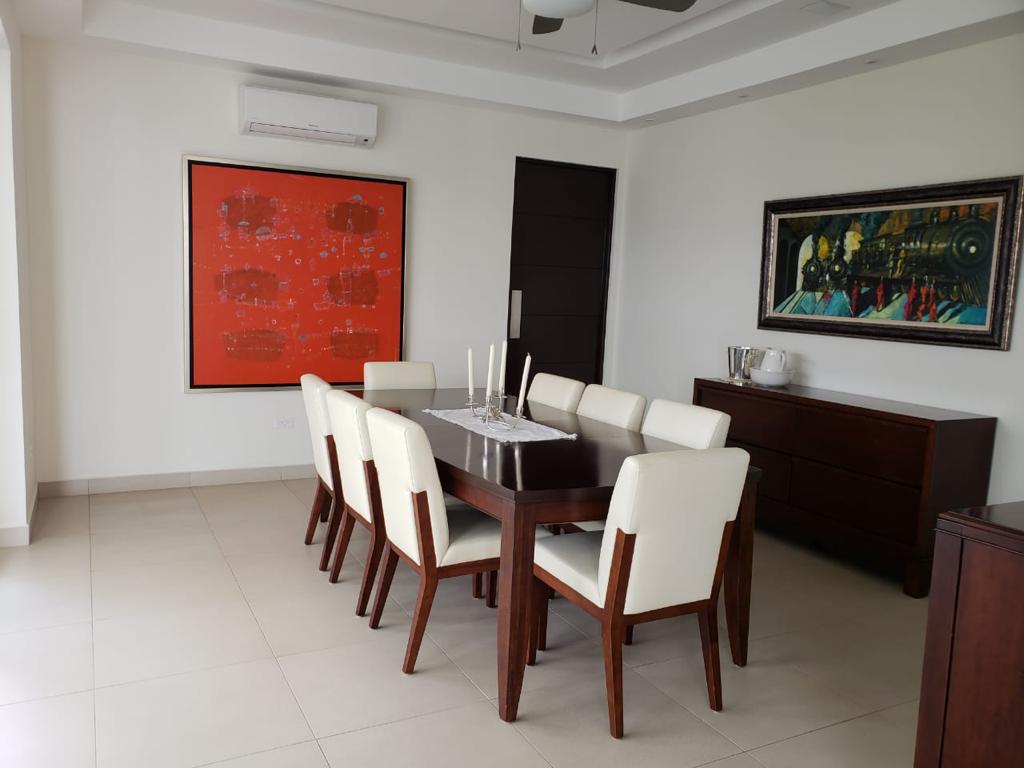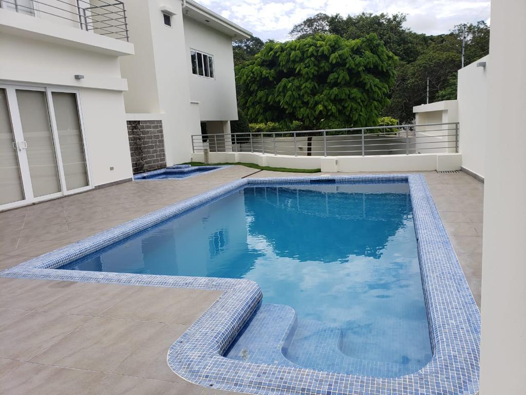 Moderna casa de dos plantas, con amplios ambientes llenos de iluminación y ventilación, ubicada en una de las zonas más cotizadas y exclusivas de Managua, clima muy agradable, ideal para vivir en familia, hermoso reparto con gran plusvalía y excelente localización con seguridad las 24 horas. La propiedad cuenta con las siguientes especificaciones: 1,295 vrs² de terreno, 541 mts² de construcción, 4 habitaciones (todas con walking closet), 4 baños completos, dos ½ baños de vistas, área social integrada, pool house y deck, sala, comedor, cocina con isla, muebles italianos y equipos empotrados - refri, cook top, horno, micro, lavaplatos, triturador, campana, más alacena separada, terraza, habitación de servicio completa, área de lavandería, caseta guardia con baño completo, 3 bodegas, aires acondicionados, abanicos de techo, cisterna agua, ventanas pvc, puertas de madera y pvc, cámaras, alarma, inversores, maquina hielo en pool house, equipo sonido integrado en el área social, panel solar calentador agua, cortinas pvc en todas las áreas incluida cocina, cerca eléctrica, muro perimetral, garaje para 3-4 vehículos, área verde con jardín, piscina grande y otra para niños.