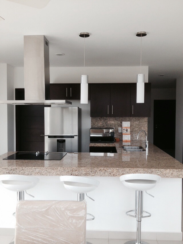 En condominio de alta plusvalía con 155 mts de construcción, se encuentra este precioso apartamento completamente nuevo, consta de 3 habitaciones con su baño, 1/2 baño de visitas, sala de estar, sala familiar, cocina con top de granito, comedor, vista panorámica, área de servicio completa, aire acondicionado, agua caliente, garaje. Completamente amueblado.