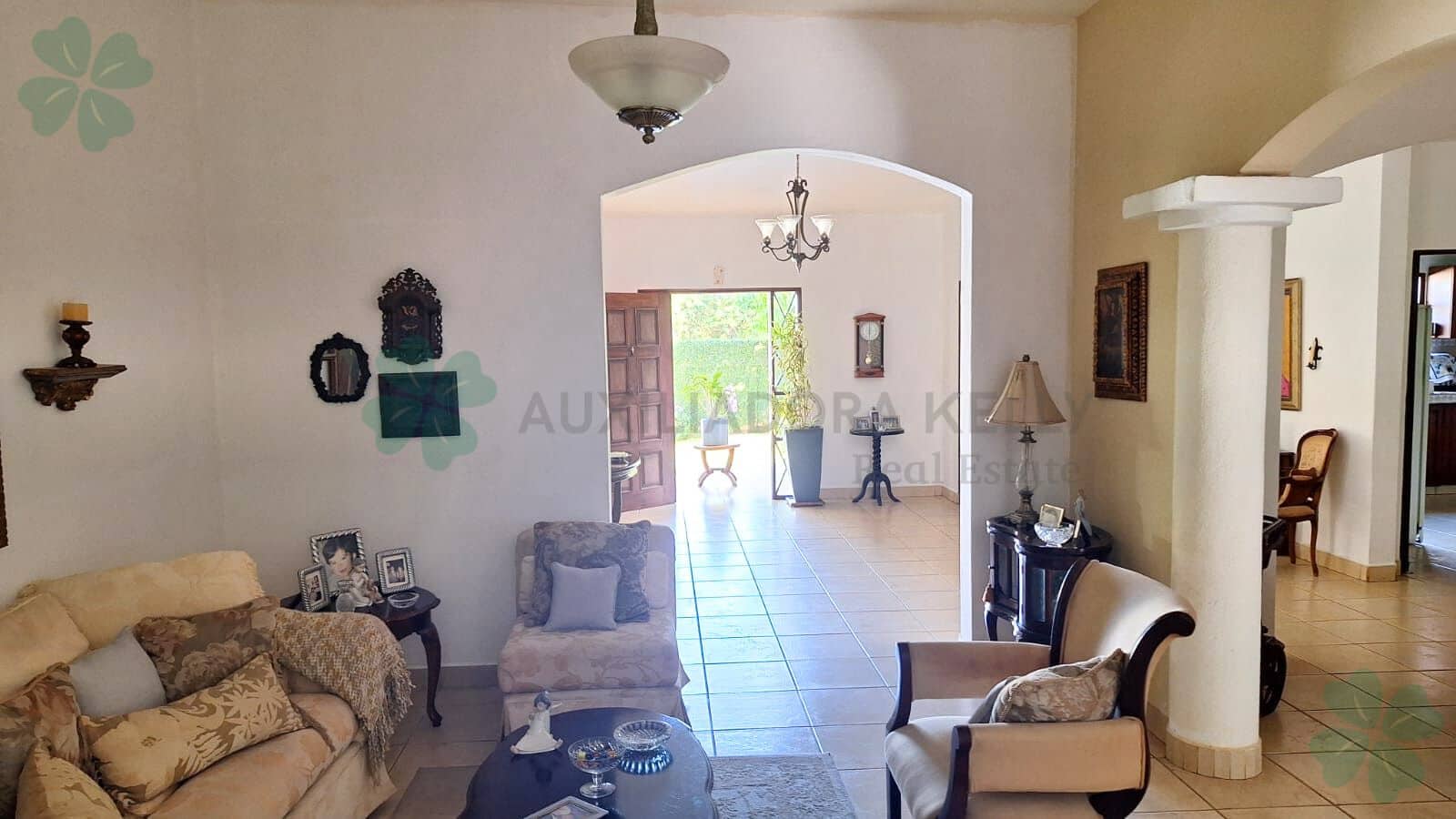 Casa en la Estancia, cuenta con 3 habitaciones c/u con su unidad de aire acondicionados y abanicos de techo, 3 ½ baños, un estudio tipo oficina, sala, comedor, cocina área de televisión, área de juegos, terraza, jardín grande, área de servicio completa, casita para vigilante; además posee tanque de reserva de agua con bomba hidroneumática y tanque de agua caliente.
