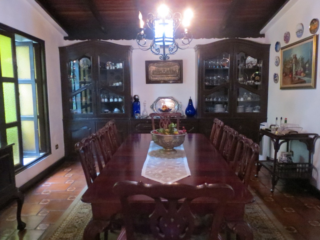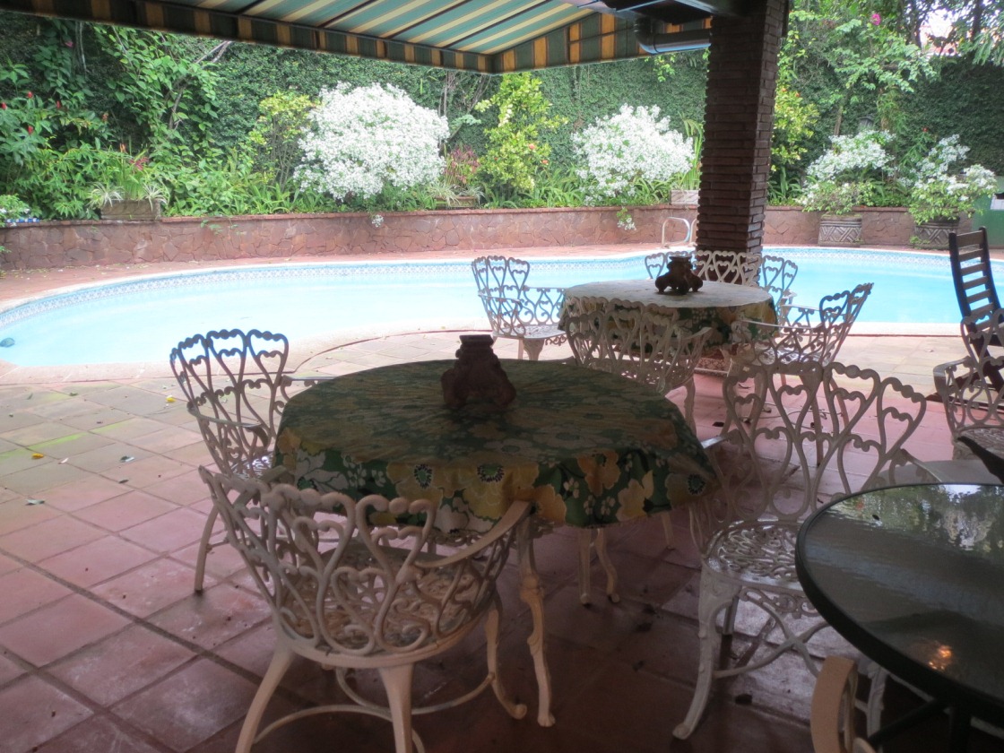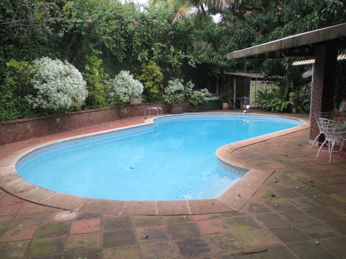 Hermosa casa con un terreno de 2,712 vrs, ubicada en lugar muy seguro de Las Colinas con ambiente agradable, consta de 5 dormitorios, 5 baños, 1/2 baño de visita, 3 salas (con lindo cielo raso con acabados de madera fina y molduras), comedor, cocina, 2 family room, dormitorio y baño de servicio, patio interno arborizado y con fuente, terraza, piscina, patio trasero con arboles frutales, área de servicio completa, cisterna de almacenamiento de agua con capacidad de 6,000 litros, garaje techado para dos vehículos, portón eléctrico, bar de madera con piso de barro y cerámica, alarma y juego de llaves maestras (abren toda la casa).