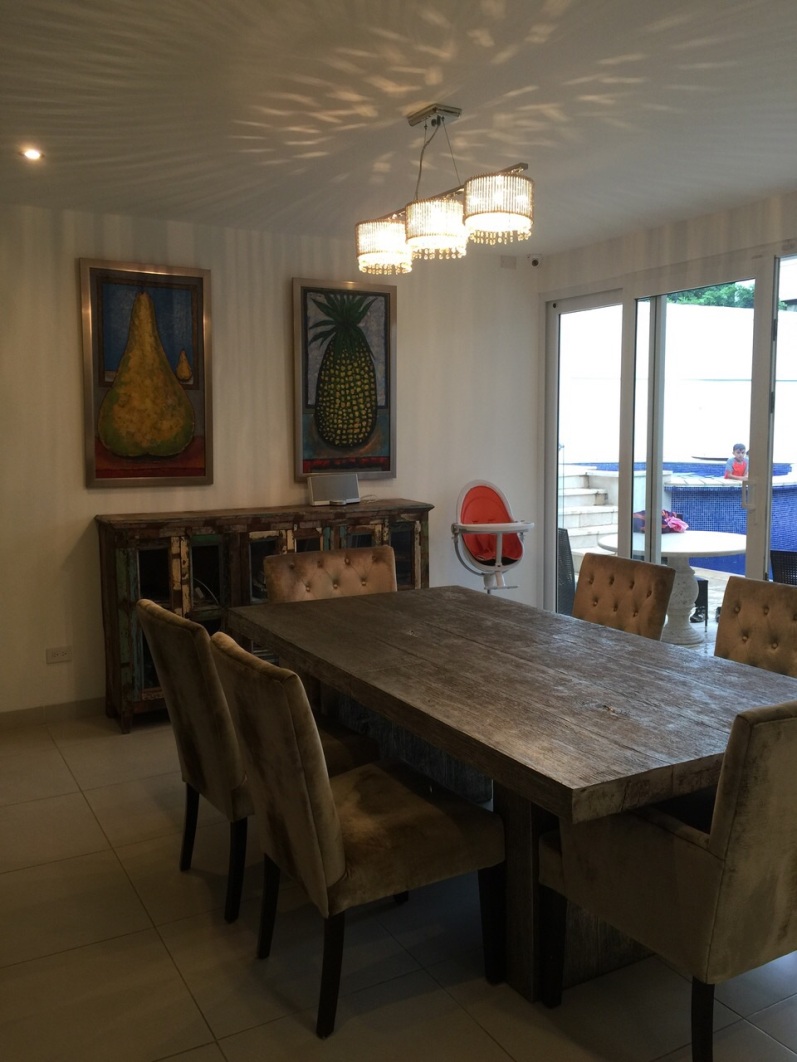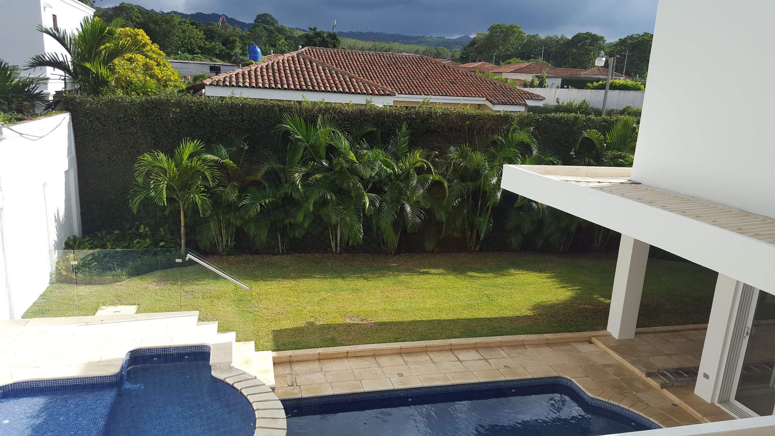 Moderna, con acabados de lujo, en zona de alta plusvalía y con seguridad 24 horas se encuentra esta propiedad, cuenta con 4 habitaciones amplias cada una con su baño y walking closet, sala de estar, sala familiar, 2 cocinas con top de granito y muebles de madera preciosa, comedor, terraza techada, jardín, piscina, jacuzzi, aire acondicionado en todos los ambientes, abanicos de techo, agua caliente, área de servicio completa, garaje techado para 2 vehículos.