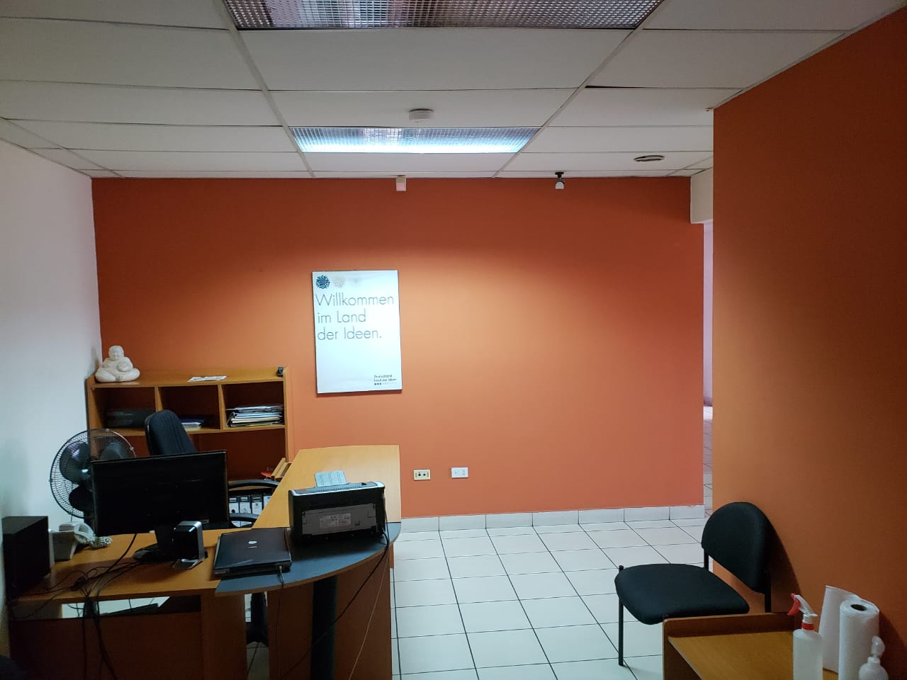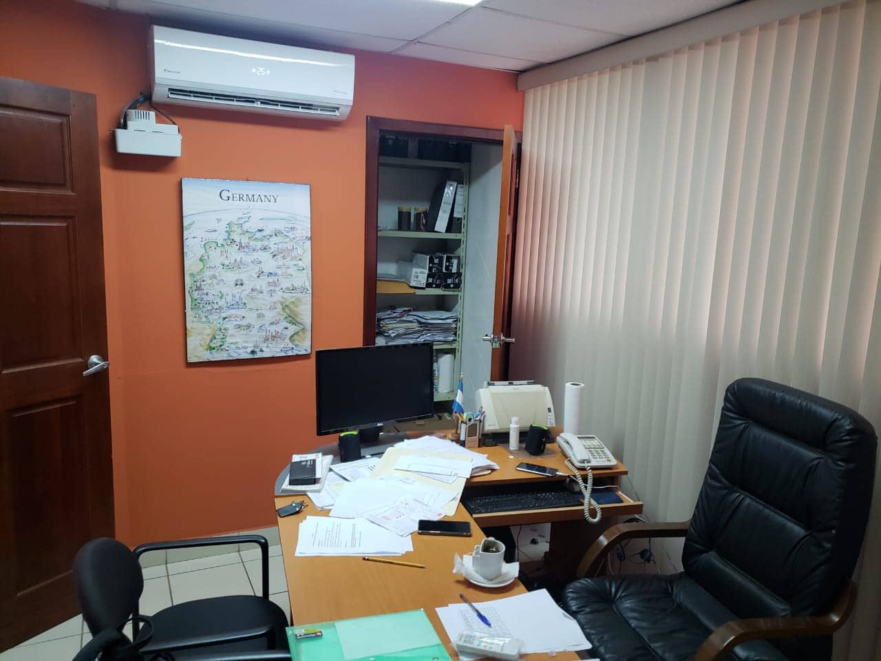 Oficina corporativa de 103 mts2 completamente amueblada y equipada; distribución: 4 oficinas independientes con sus unidades de aires split 12mil btu, de alto ahorro energético, sala de conferencias con unidad de 18mil btu, baños externos, cocina, bodega, 3 estacionamientos privados bajo techo y estacionamientos para visitas, excelente ambiente iluminación natural y ubicación.