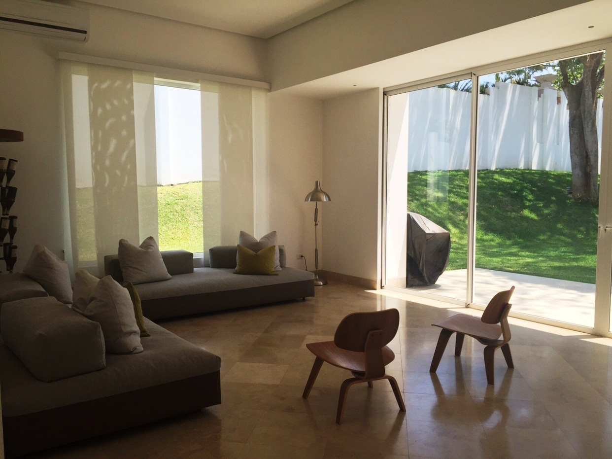 Bella y moderna casa completamente amueblada con amplios espacios, excelente iluminación, ventilación, acabados de lujos, ubicada en una de las zonas más exclusivas de Managua dentro de condominio con seguridad las 24 horas, muro perimetral y acceso controlado. La propiedad cuenta con las siguientes especificaciones: 2,600 Vrs² de terreno, 550 Mts² de construcción, 4 habitaciones (habitación principal con jacuzzi), 4 baños completos, ½ baño de visitas, vestíbulo, sala de estar, sala TV, comedor, cocina, terraza, habitación de servicio completa, área de lavandería, cortinas modernas, aires acondicionados inverter, abanicos de techo, planta eléctrica de gas, cisterna, bomba de agua, calentador de agua de gas, luces LED, piso de mármol, sistema de alarma, estacionamiento bajo techo para dos vehículos, amplia área verde con jardín y piscina con fuente.