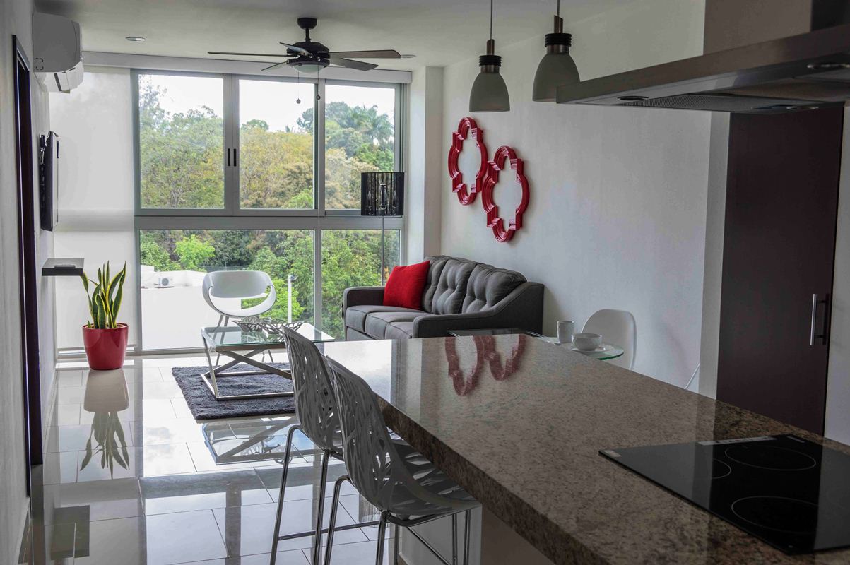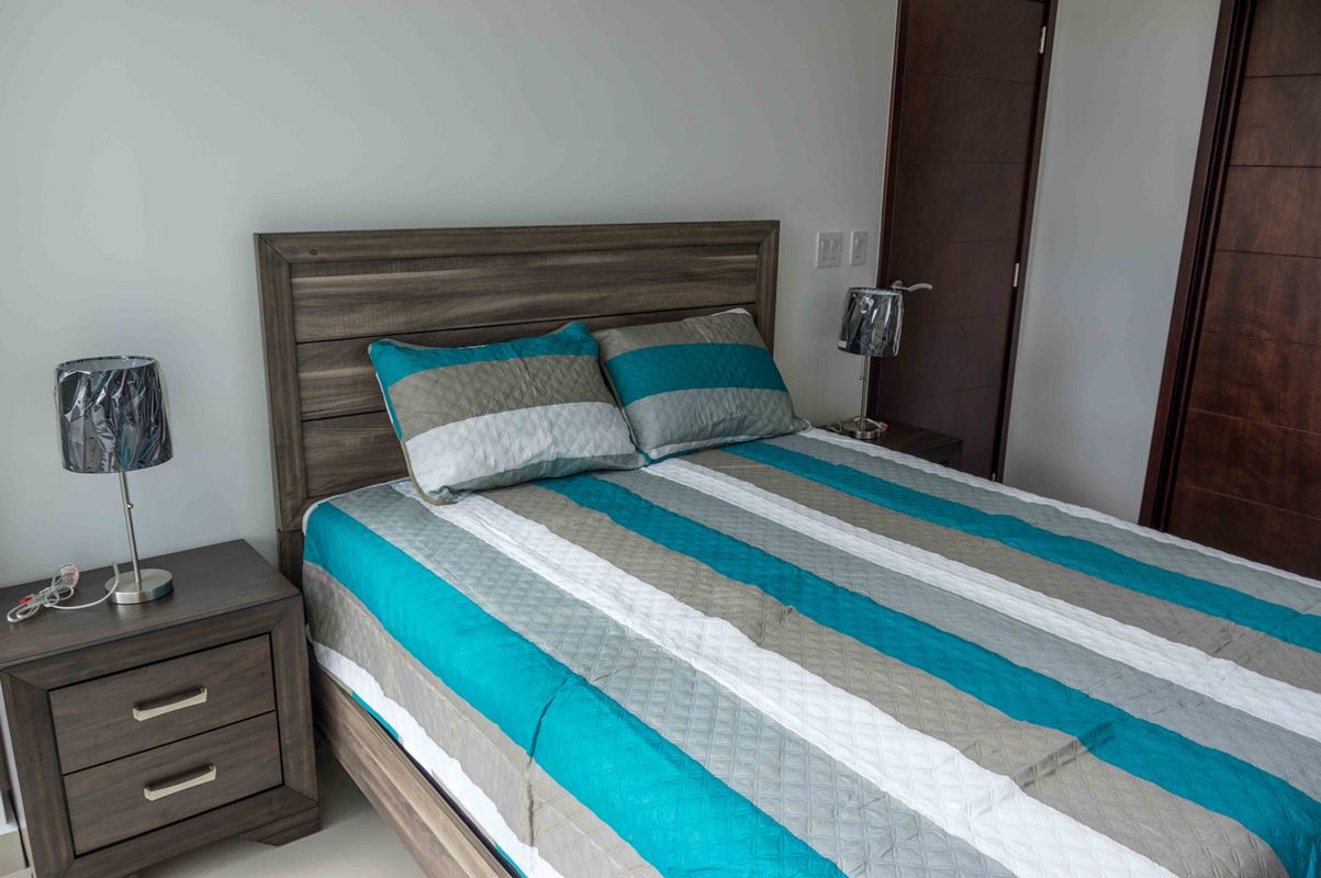 Lindo apartamento completamente amueblado, con visita panorámica desde el 3er piso, a solo 10 minutos del centro de Managua. Espacioso, moderno, con todas las comodidades del área urbana en una zona segura y exclusiva de la capital, dentro de condominio con seguridad las 24 horas, muro perimetral, control de acceso y área comunal con piscina. Cuenta con las siguientes especificaciones: 75 mts de construcción, 2 habitaciones, 1 baño completo, ½ baño de visitas, sala, cocina con desayunador, aire acondicionado inverter, estacionamiento.