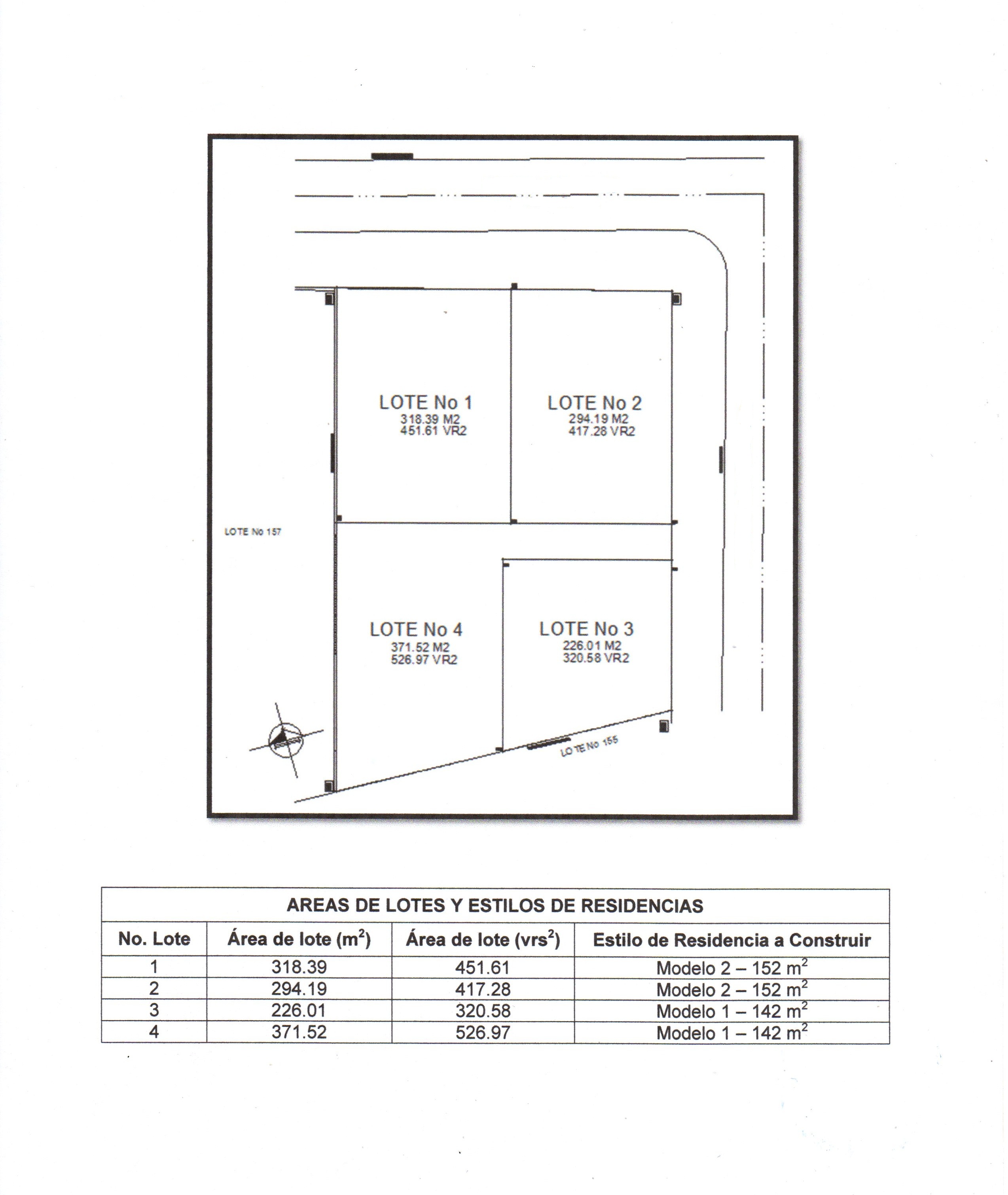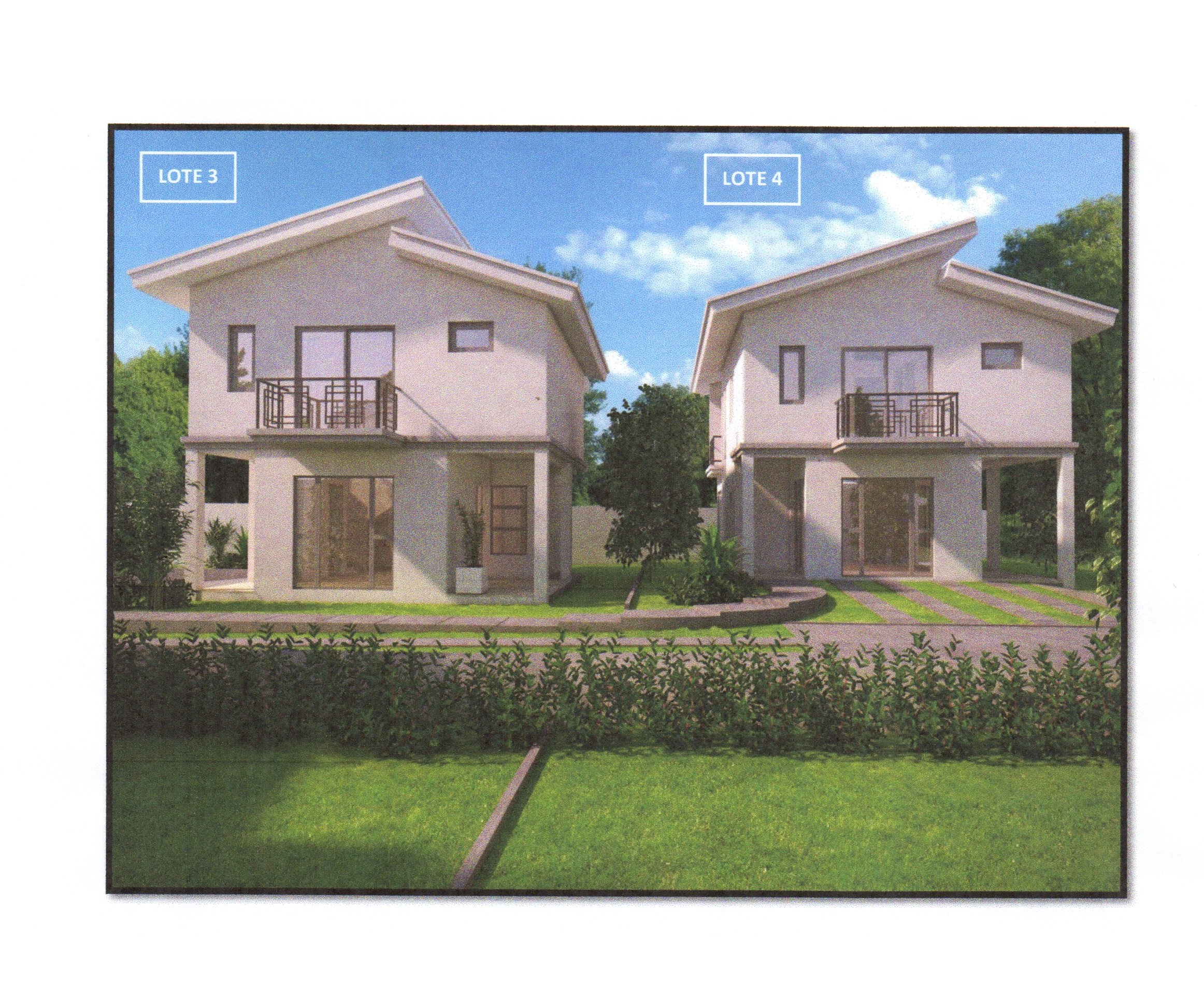Proyecto residencial de 4 viviendas (2 casas de 142 Mts.2 y 2 casas de 152 Mts.2); Modelo Roble: con las siguientes especificaciones: Planta baja: Sala de estar, cocina amplia con top de granito, comedor, terraza techada, 1/2 baño de vista, área de servicio completa, área de lavado. Planta alta: Sala familiar, habitación principal (con walking closet, balcón, baño privado), habitación secundaria (con closet de pared, baño privado, balcón). Modelo Laurel: con las siguientes especificaciones: Planta baja: porche, sala de estar, cocina amplia con top de granito, comedor, habitación principal (con walking closet, baño privado, terraza techada), terraza techada, área de servicio completa, área de lavado. Planta alta: 2 habitaciones (cada una con baño privado, closet de pared), balcón. Precios desde US$162,200.00 hasta US$177,200.00.