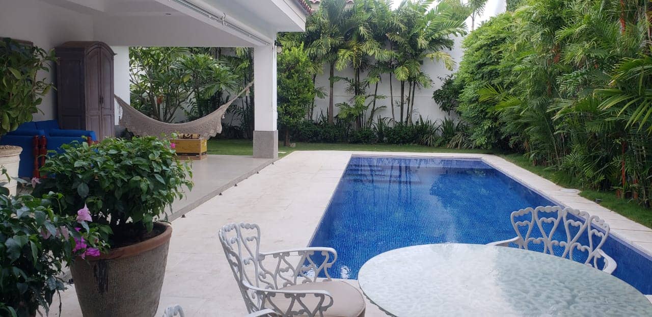 Bella casa con amplios y cómodos ambientes, en condominio exclusivo en los Balcones de Santo Domingo, clima fresco y agradable, calles amplias, seguridad las 24 horas, muro perimetral, acceso controlado, portón eléctrico, energía soterrada. La propiedad cuenta con las siguientes especificaciones: 1055 vrs² de terreno, 283 mts² de construcción, 3 habitaciones (con walking closet), 3 baños completos, ½ baño de visitas, sala de estar, sala, comedor, cocina, 2 terrazas, habitación de servicio completa, área de lavandería, bodega, abanicos de techo, aires acondicionados, cortinas, cisterna hidroneumática, sistema de riego, inversores que garantizan hasta 8 horas de energía, garaje techado para dos vehículos, piscina y amplia área verde con jardín.