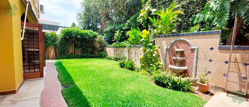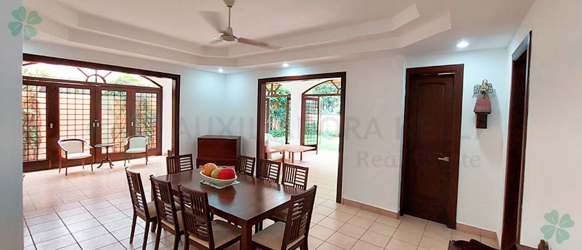 sala, cocina, comedor, estar familiar, 4 habitaciones cada una con su walking closet, baño propio, unidades de aire acondicionado, abanicos de techos en las habitaciones y zonas varias, área de servicio completa, terraza, jardín, bodega, garaje techado para 2 vehículos con portones eléctricos, tanque de reserva de agua, agua caliente en toda la casa, planta de energía eléctrica.