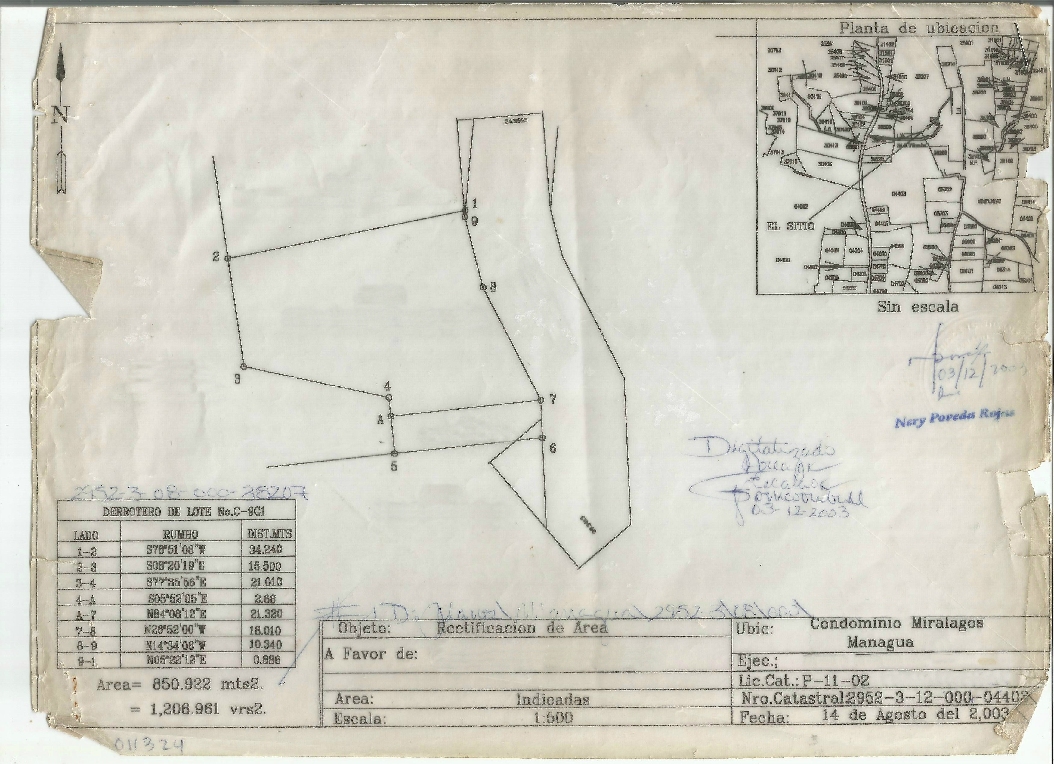 Terreno de 1,206.9 Vrs.2 en condominio seguro y tranquilo, con impresionante vista hacia la ciudad de Managua, acceso por calle pavimentada, a servicios básicos. Con un precio de US$35.00 por Vrs.2